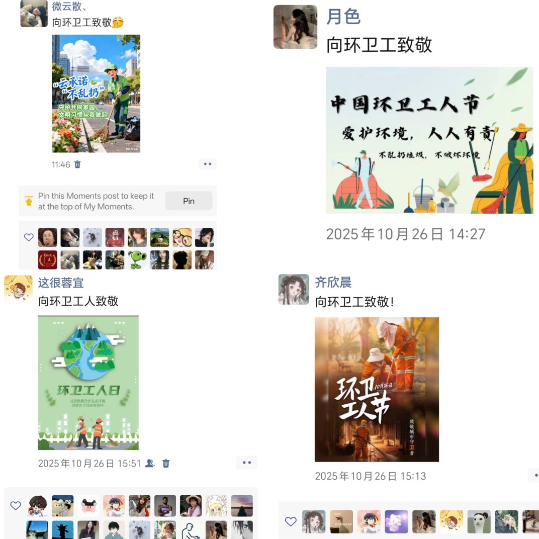 本次活动以“致敬环卫工,文明我先行”为主题,巧妙依托新媒体平台,鼓励参与者亲手设计一张独具个性的电子承诺卡。同学们将“不乱扔垃圾、尊重劳动成果”的承诺化为图文,在朋友圈郑重分享并集赞,以线上接力传递对城市美容师的感谢与尊重。方寸屏幕之间,承载的是莘莘学子对文明习惯的认同与践行。