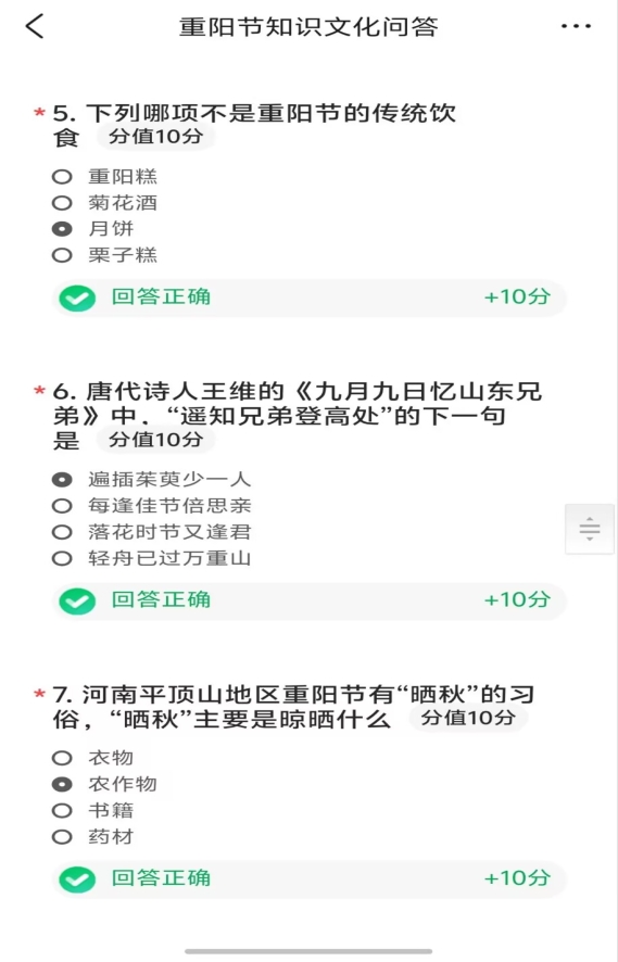 活动一经推出,便得到了同学们的积极响应。大家通过手机、电脑等设备参与答题,在轻松愉悦的氛围中感受传统文化的魅力。不少参与者表示,这样的线上活动形式灵活便捷,不仅能学到重阳节的相关知识,还能增进对中华传统文化的认同感和自豪感。活动期间,线上互动留言、分享感悟等方式,进一步调动了大家的参与热情,营造了浓厚的节日氛围。