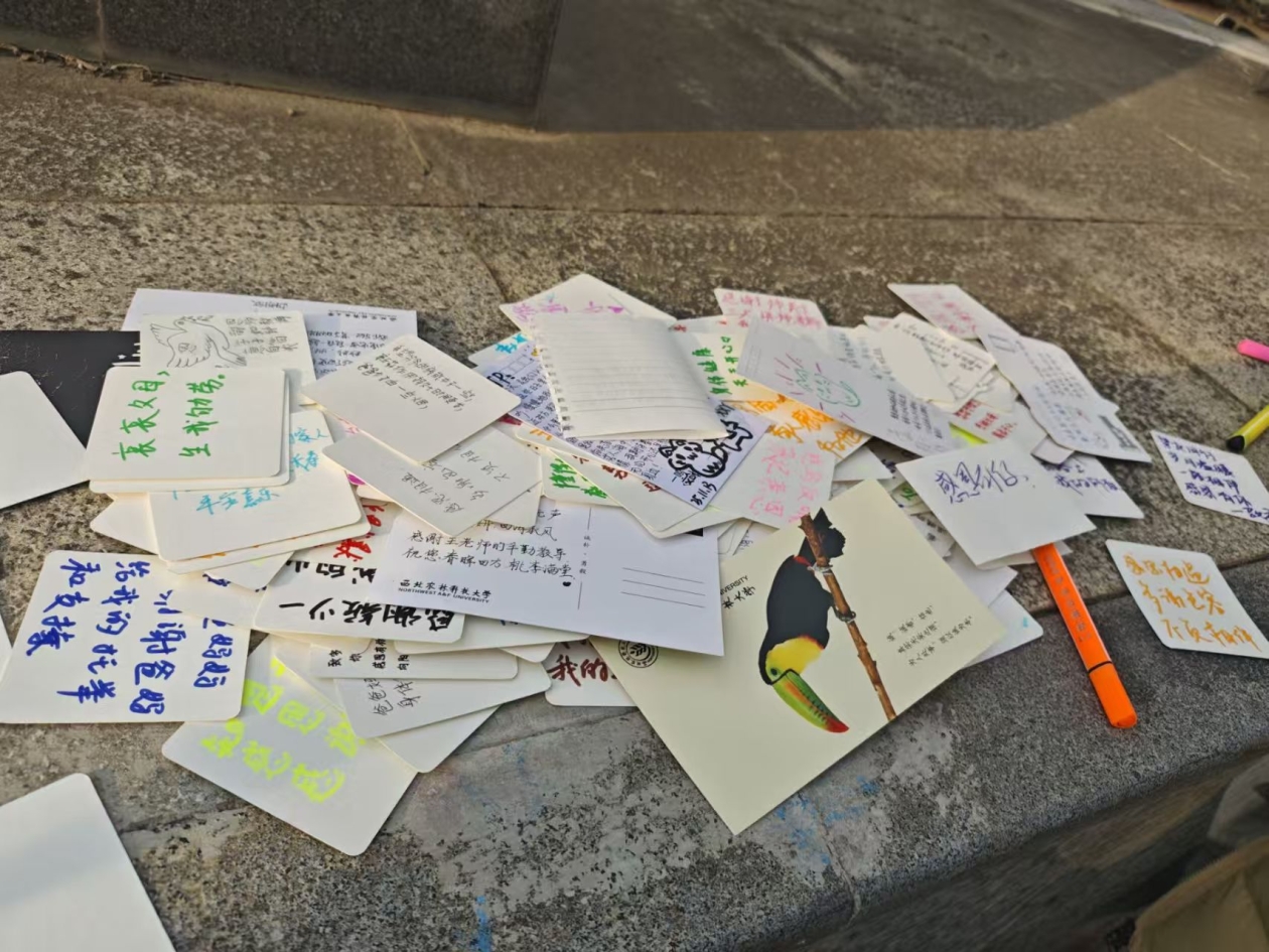 活动现场气氛温馨而专注。部分同学提前完成创作,早早前来提交作品;更多同学则沉浸于手工过程,认真裁剪、绘制、书写,西雕广场处处洋溢着温暖与感动。